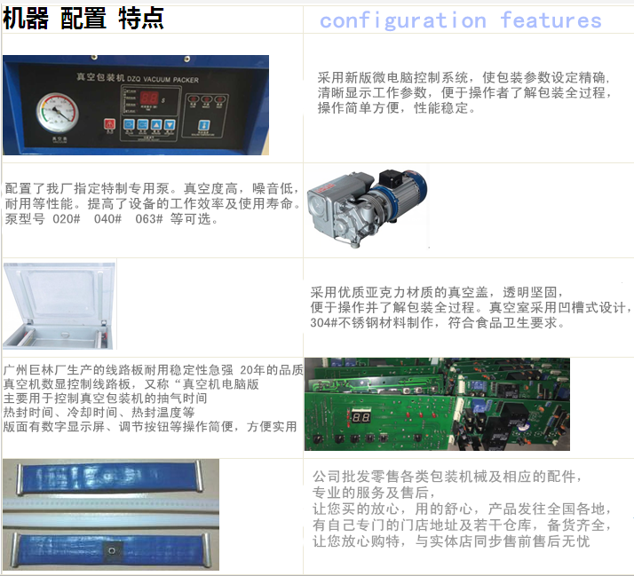 本公司擁有雄厚的技術力量,生產產品多領域,在真空包裝機規模最大品種最多的生產商。DZ系列真空機選用國內外知名廠家,如南通、上海、德國、日本等真空泵和電器元件的不同配置。機體全不銹鋼全封閉、軸流散熱形式、耐惡劣環境長時間連續使用具有高穩定性。是目前國內領先機型,可替代進口機型。